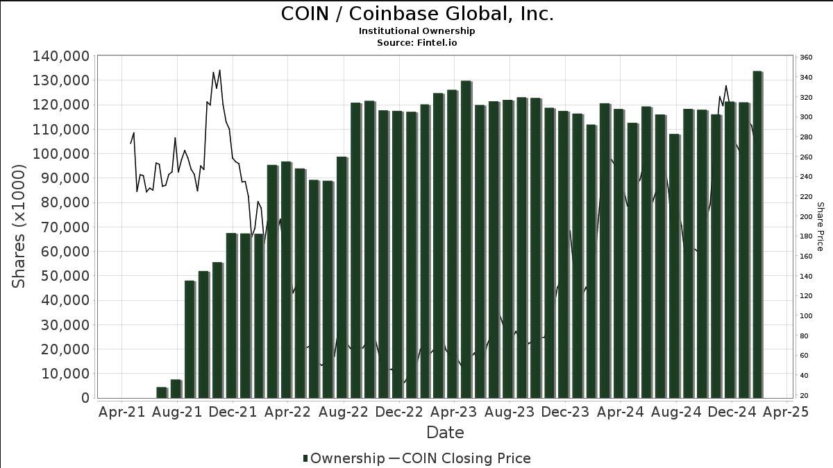 $COIN now has the most institutional ownership ever and has seen a large month over month increase and its all happening while retail is panicking.