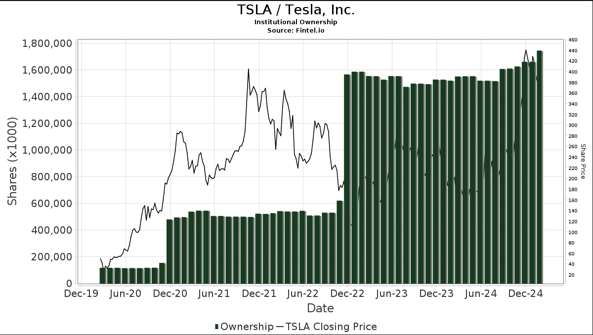 You are now seeing another surge of buying for $TSLA as well month over month. In fact the last time $TSLA ownership surged the most was when Elon was buying Twitter and price action was terrible which is proof they are buying when retail is panicking.