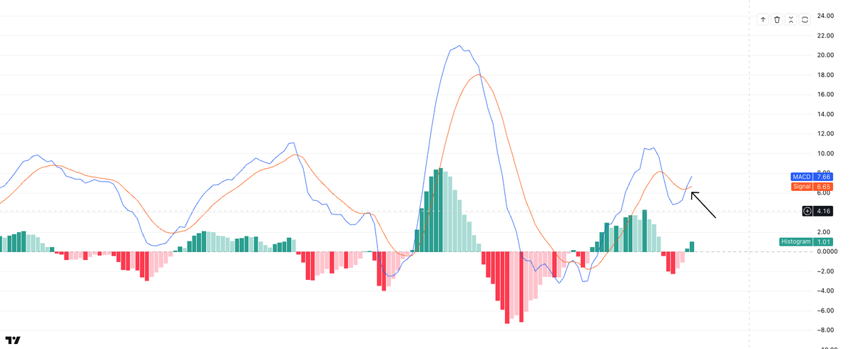 3/ Remember, $IWM hasn't made a true new high since 2021, building a massive base. Short positioning by hedge funds is at all-time highs, setting up for a potential squeeze. We've seen a bull MACD cross on the monthly chart (even though I rarely focus on MACD) for the first time since Dec 2023, and it's up nearly 4% in a single day post-Powell comments. This isn't just noise; it's the kind of strength that ignores lower-timeframe bear divs and points to underlying momentum.Image