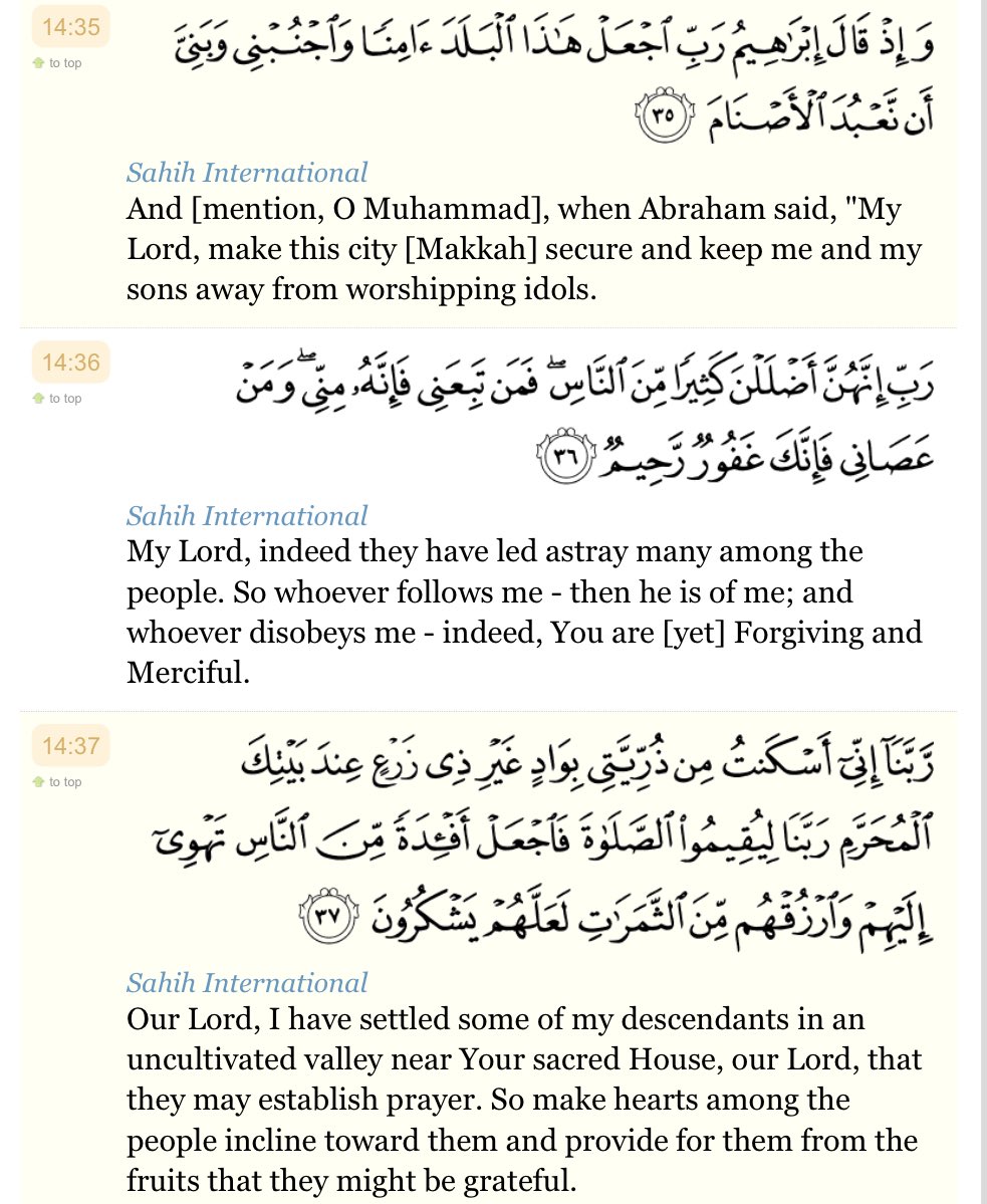 There is a significant connection and message that the Qur’an intends to convey to the Quraysh through the story of Abraham settling his descendants in Mecca near the House of God: Abraham prays to Allah to keep him and his offspring away from idol worship…