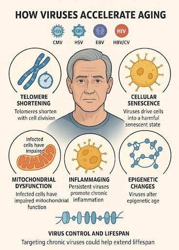 Chronic viruses can quietly speed up aging in the immune system, liver, brain, and elsewhere.