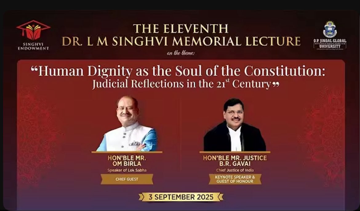 Chief Justice of India BR Gavai and Speaker of Lok Sabha Om Birla to shortly speak at the Dr. LM Singhvi memorial lecture organised by Jindal Global University.