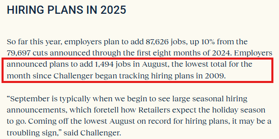 Job cuts just surged by +88,736 in August 2025 alone, the highest August total since 2020.