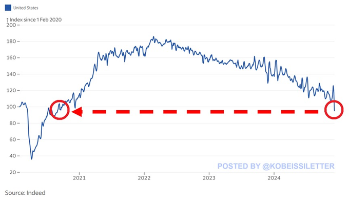 Job postings fell for 3 years straight and fell -49% since the February 2022 peak.
