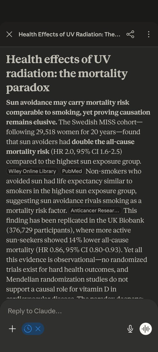 However, nowadays there's actually quite some science supporting the benefits of sun exposure, though causality is difficult to establish