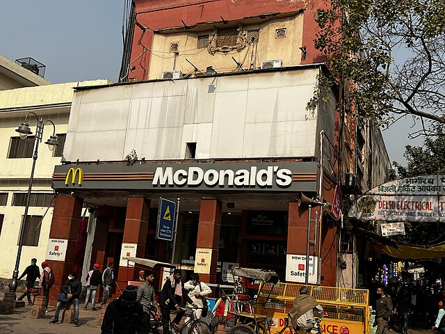 - McDonald's in Delhi, India, photographed by HominyGrits007. Licensed under Creative Commons Attribution-Share Alike 4.0.