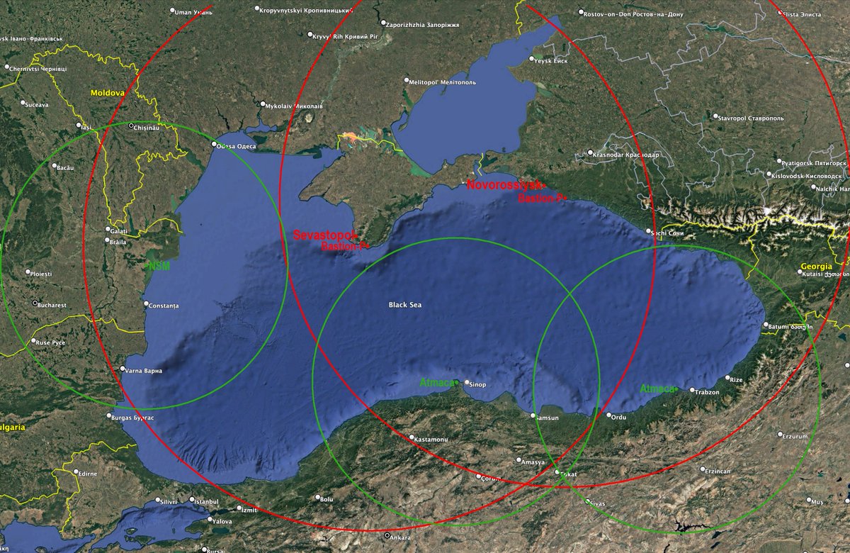To better understand the Battle of the Black Sea we need to look again at the region's map, but this time with anti-ship missile ranges and russia's 5/n