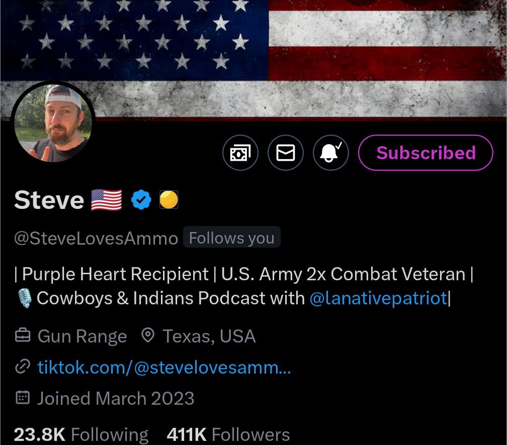 While almost completely unknown 😇, @SteveLovesAmmo (follow him) has built a GREAT community on X. Steve has reposted and replied to me more times than I can count. Currently struggling with his rapid aging, Steve can use support as his beard goes completely white. 😂