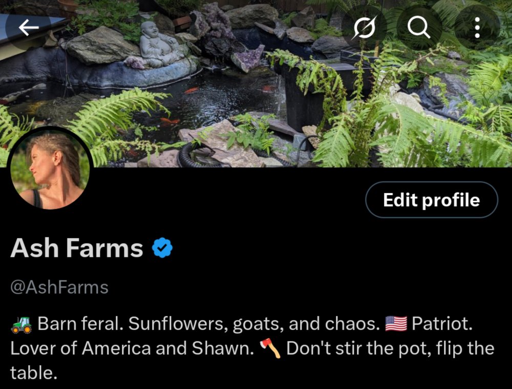 Who, me? I'm @AshFarms (click follow!) and I'm not here to stir the pot, I'm here to flip the tables. Let's MAGA. My hobbies include poking at my bestie @sovey_X and muttering at goats. Come join the show, it's fun!