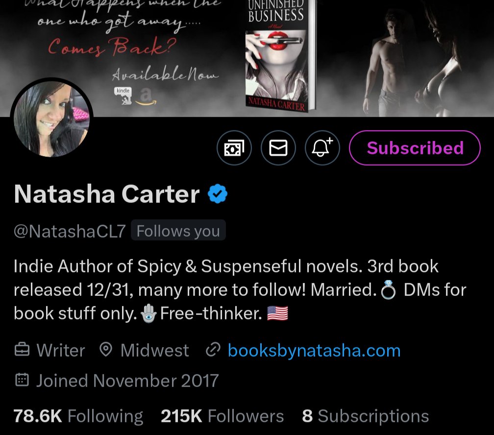 An incredible author, I remember fan-girling HARD the first time @NatashaCL7 (follow her!) sent me a DM. Her books are spicy and her feed is insightful and fun. Natasha is always, always replying to comments and adding comments to other's posts! A must follow.