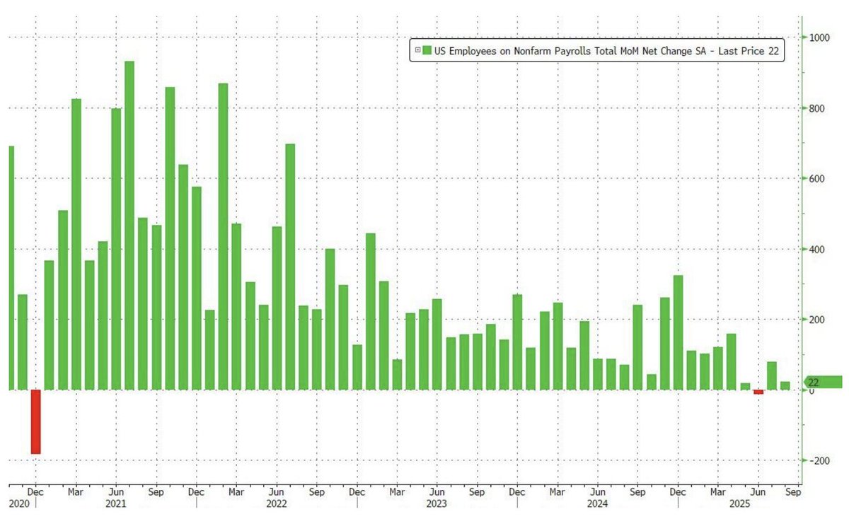 And today’s payrolls confirmed it: just 22,000 jobs were added in August.