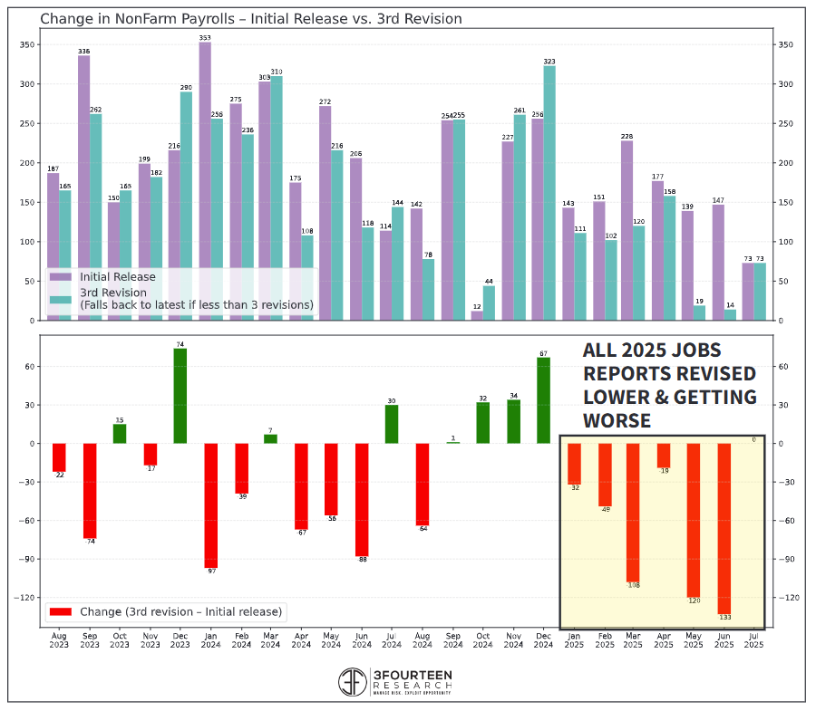 Every single jobs report in 2025, except July, has been revised down. By the time the truth shows up months later, the slowdown has already hit.