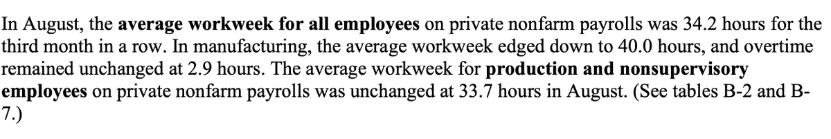 The length of the workweek stayed flat. Employees averaged 34.2 hours for the third straight month.