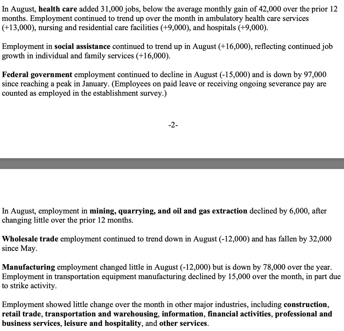 Health care added 31,000 jobs. Social assistance added 16,000. But the federal government lost 15,000.