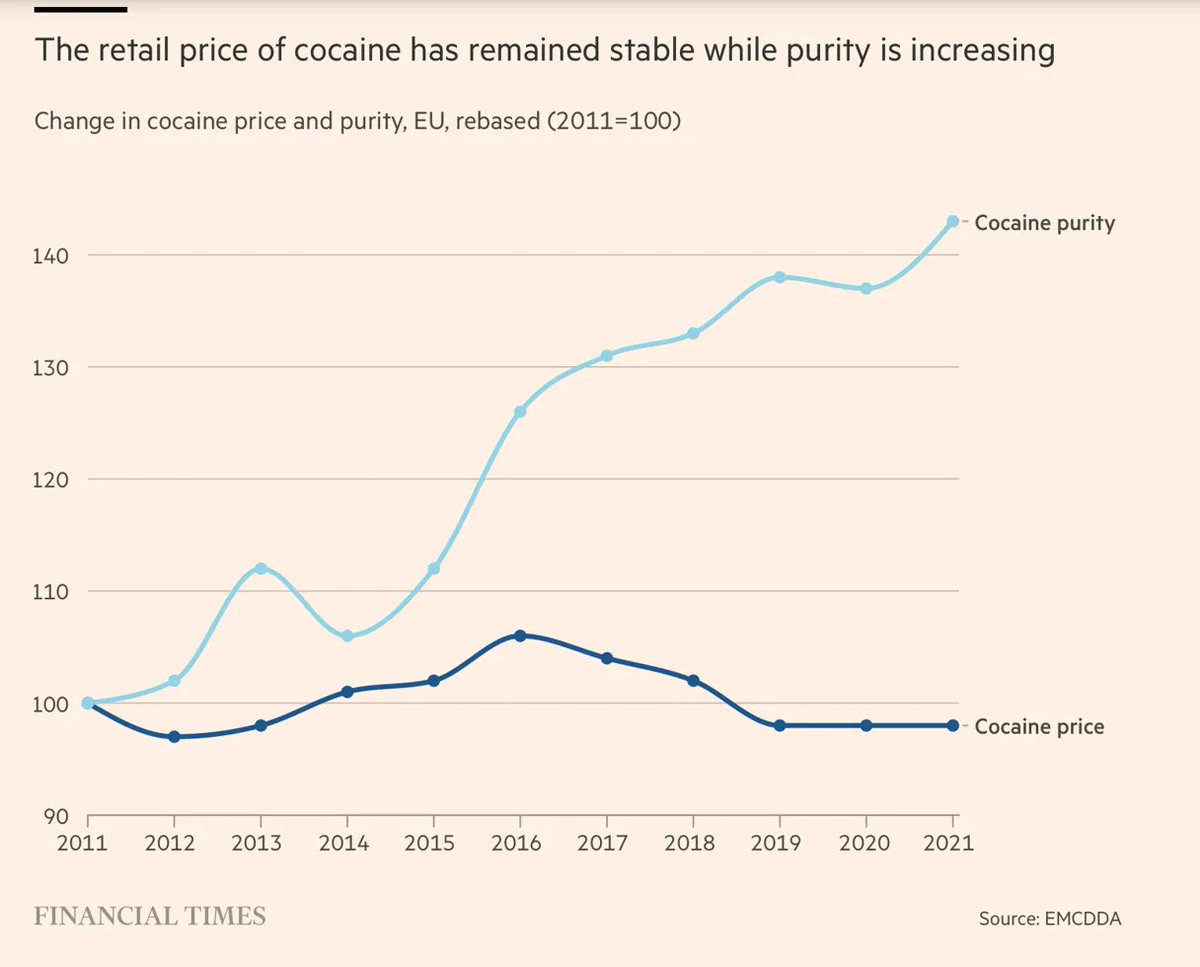 The results speak for themselves. Cocaine prices fell 80% while purity increased 45%. Small dealers got arrested, big cartels got stronger.