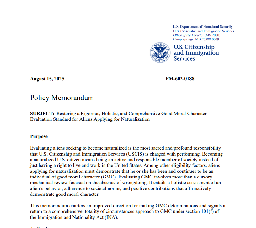 The new policy on "anti-Americanism" and discretionary benefits comes just days after the Trump admin tightened standards for naturalization, ordering a more searching analysis of whether applicants for citizenship have met the required "good moral character" standard.