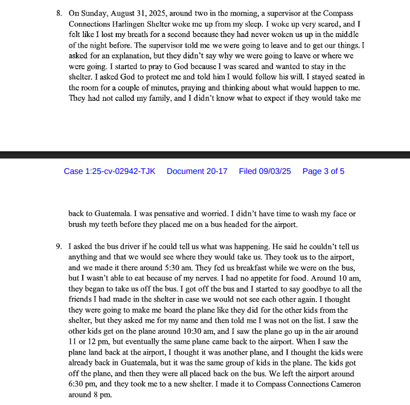 🚨NEW: Declarations filed in the lawsuit against the rushed attempt to deport 600 Guatemalan children reveals the chaotic way the Trump admin carried out the operation.