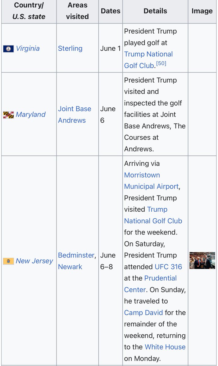 Looking at Wikipedia and his travel logs every other time period shows frequent flights, even regionally to Bedminster, or longer stretches to Doral, Mar-a-Lago, and state visits,