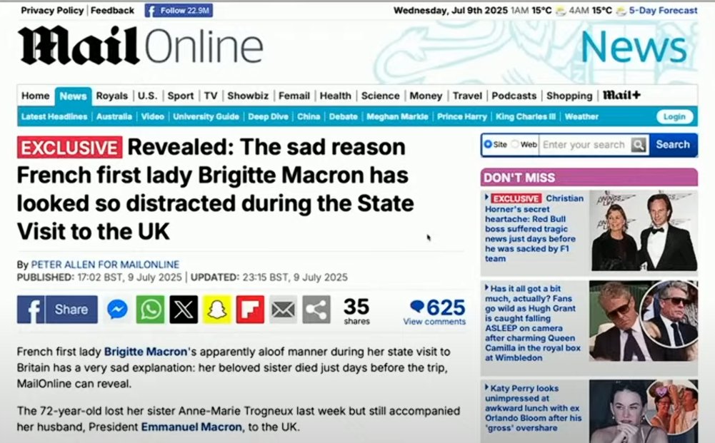 (3/13) 🇬🇧Certains médias britanniques expliquent l'air triste de Brigitte lors de la visite de Macron au Royaume-Uni en juillet par le décès récent de sa sœur et de sa nièce. Une révélation passée inaperçue