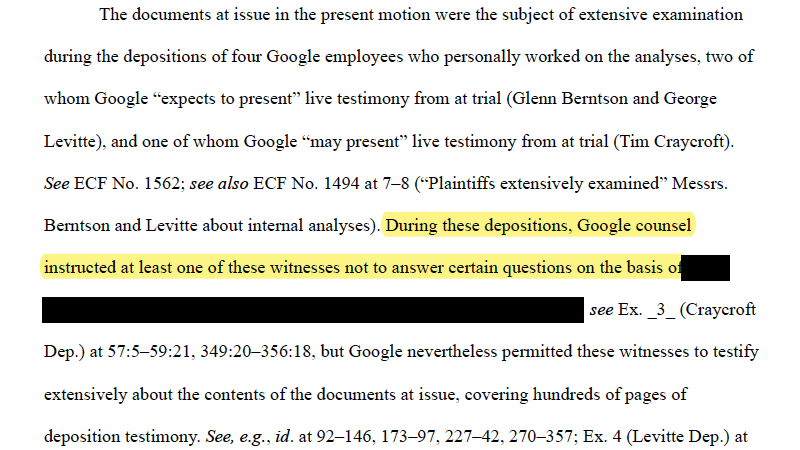 One of those employee witnesses is Tim Craycroft. It appears Google counsel shut down some of his answering on this matter. Craycroft worked at Amazon for a long time so I find him very interesting as a witness here. /14