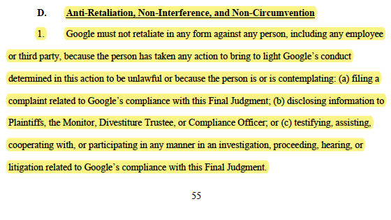 And finally, those who helped shine sunlight on all of Google's abuses over the last decade to the critical moment of these trials will be able to go back to their day lives without retaliation from Google. Note: no publishers testified in the search remedies. Hmmm. /9