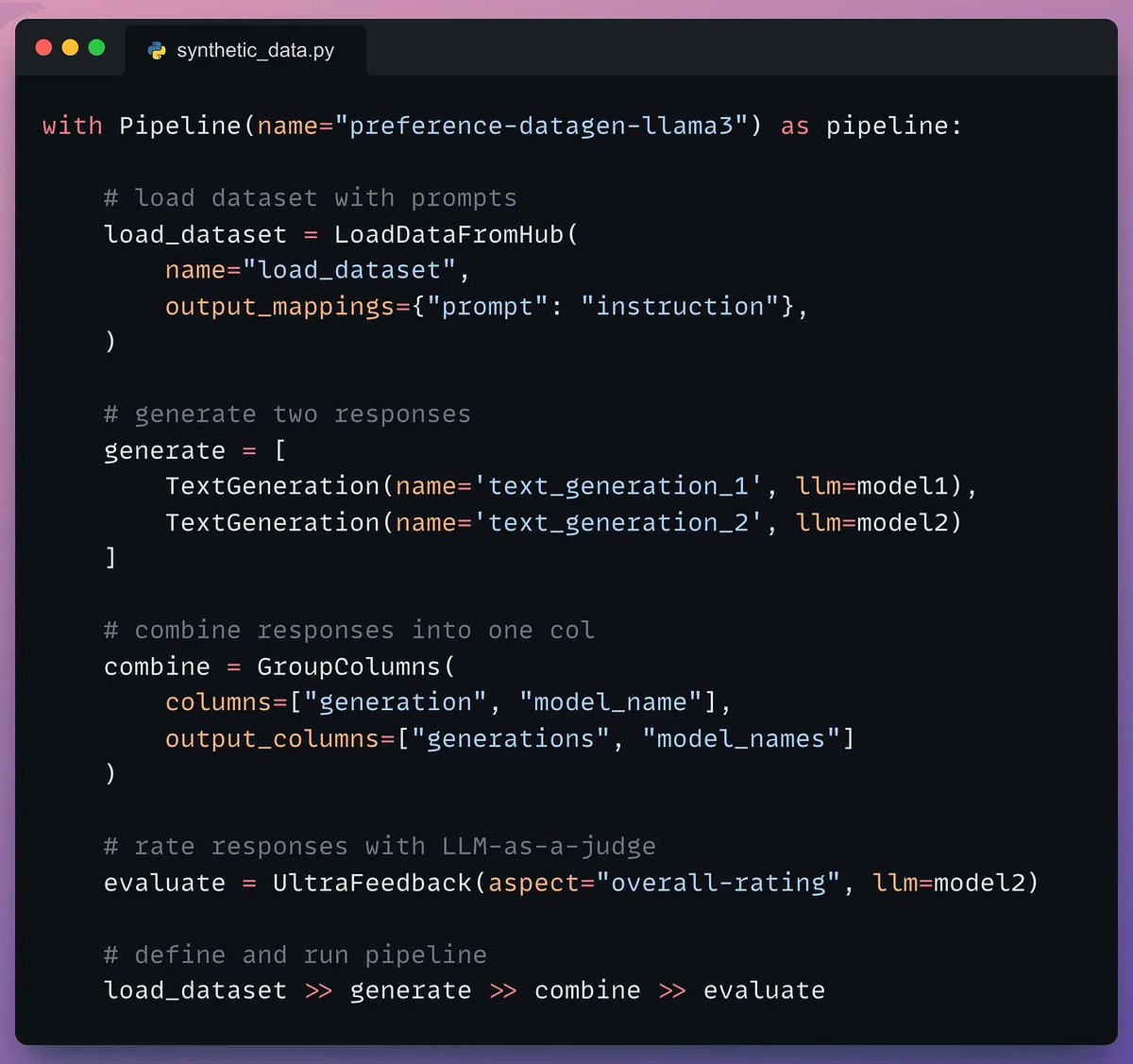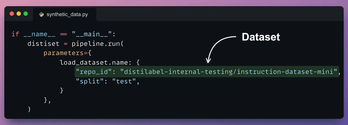 This produces the instruction and response synthetic dataset as desired.