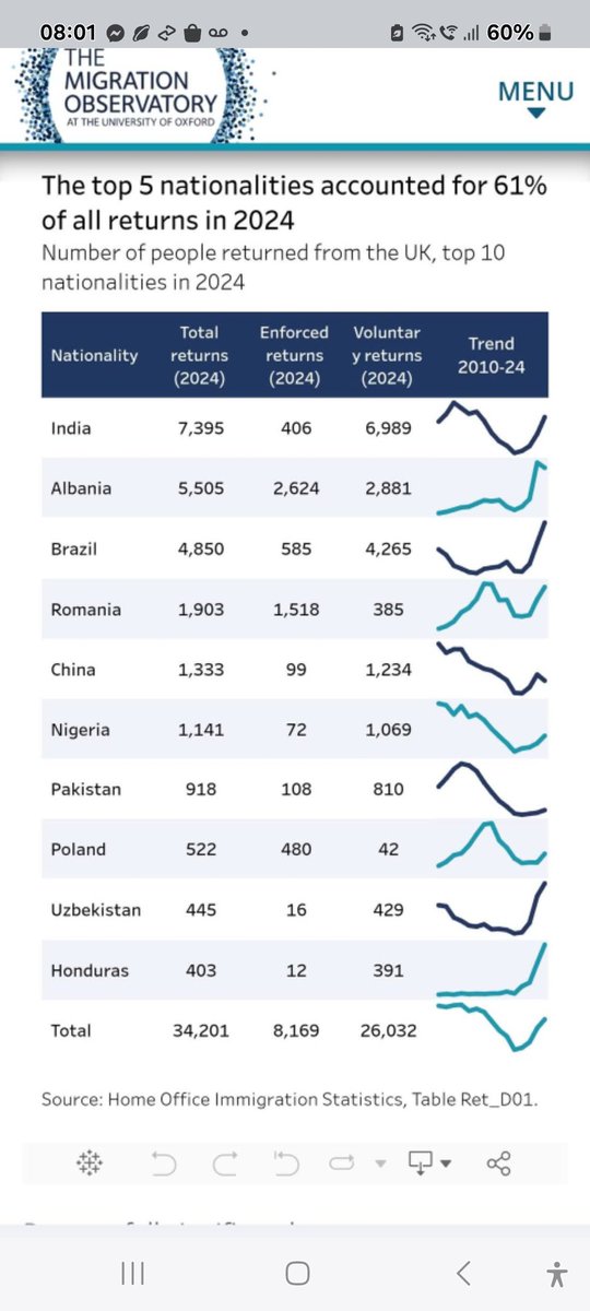 Around 34,000 returns (both voluntary and enforced) occurred in 2024, with enforced returns making up about 8,200 of that total. While the term "deported" is often used, the official figures differentiate between enforced removals and voluntary returns, the latter being more common.