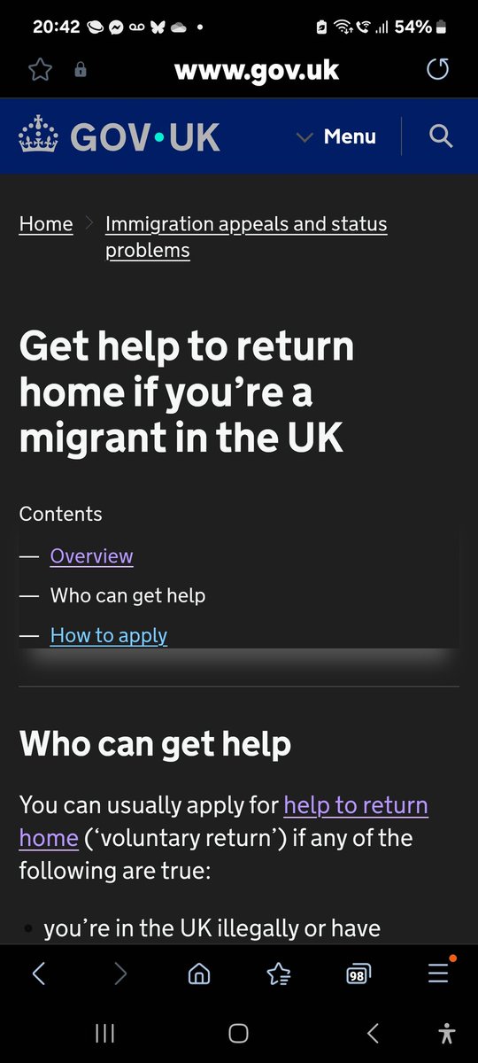 Migrants in the UK can receive assistance for voluntary returns through the Home Office's Voluntary Returns Service (VRS), which can include help with travel documents and a financial payment of up to £3,000 to support reintegration in their home country. This financial aid is intended for costs like finding housing, a job, or starting a business. You can apply for the VRS online, by telephone, or by contacting a caseworker.