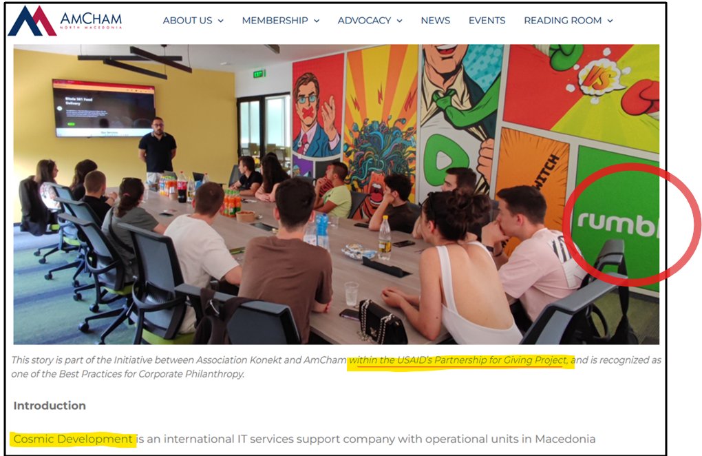 🧵6. Rumble video/Cosmic Development partnered with USAID via AMCHAM (American Chamber of Commerce) for its operation in Macedonia.