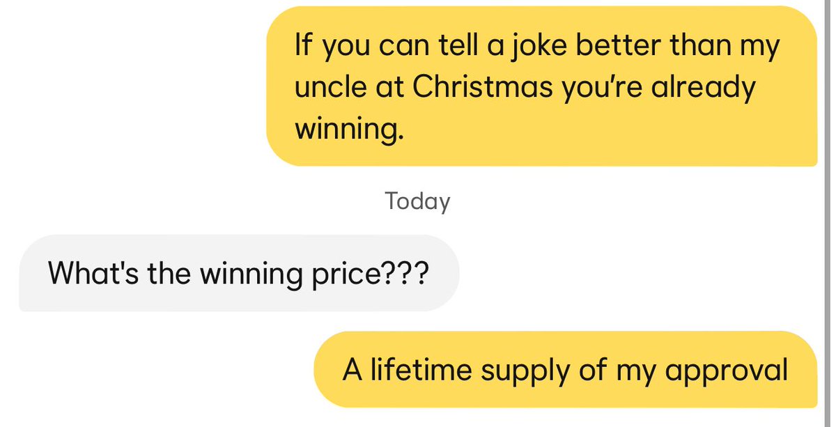 "If you can tell a joke better than my uncle at Christmas, you are already winning"