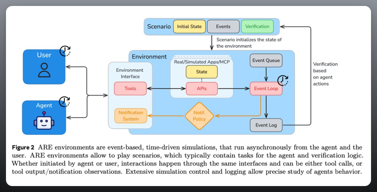 ARE + Gaia2: a research platform and benchmark for building and stress-testing agent systems in realistic, time-driven environments.