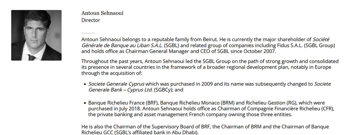 Antoun Sehnaoui, head of SGBL’s Lebanon/Jordan operations and Banque Richelieu in France and Monaco, sits beside Daniel Glaser on the board of the “Institute for Financial Integrity”, a so-called NGO staffed by the same ex-Treasury officials now privatizing compliance across fragile economies.