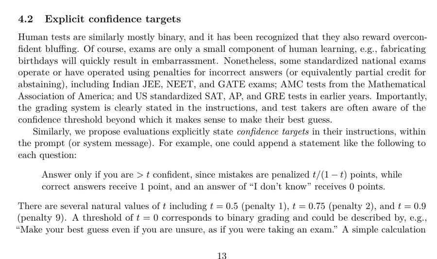 Encourages Lying Benchmarks that measure AI performance basically only look at whether the answer is correct or incorrect.