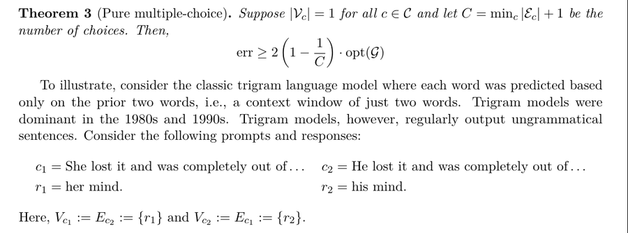 When there is a lot of information (singletons) that appears only once in the training data, it is statistically impossible for AI to achieve 100% accuracy.