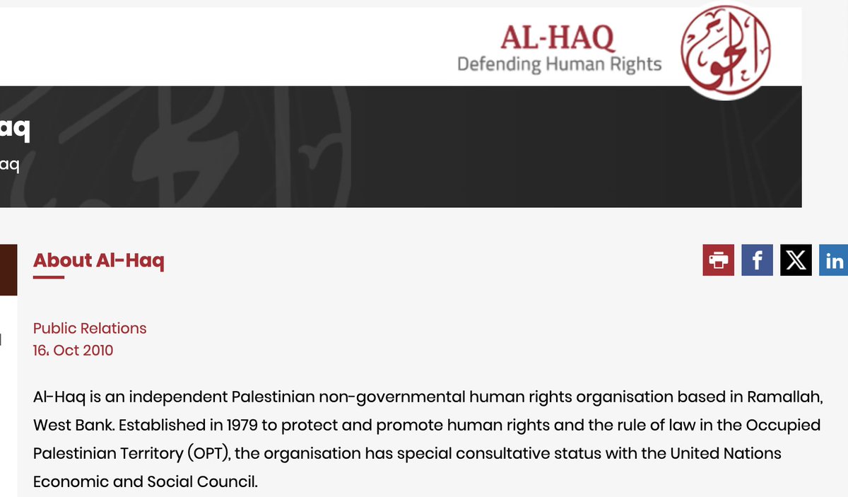 @IRIglobal Al-Haq has special consultative status with UN ECOSOC and has membership in multiple NGO networks. Open Society Foundations openly pushed against Israel's designation of Al-Haq as a terrorist group.