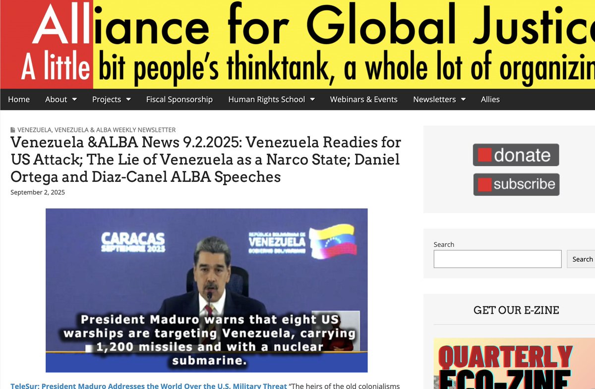 Alliance for Global Justice -- yes, the same one I wrote about yesteday as the lowest-hanging fruit to crack down on paid protesters -- is one of the biggest amplifiers of the "Cartel of the Suns does not exist" narratives.