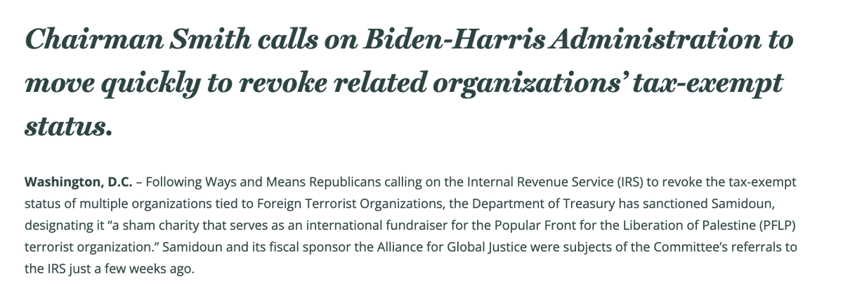 The Ways and Means committee called on the Biden administration to revoke AfGJ's nonprofit status. But nothing was done. And now these tax-free donations are going to Refuse Fascism, which is building up for a nationwide protest in November.