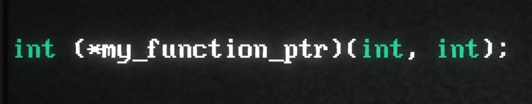 - (*my_function_ptr): The name of our pointer variable. (The parentheses are a must, without them you'd be declaring a function that returns a pointer).