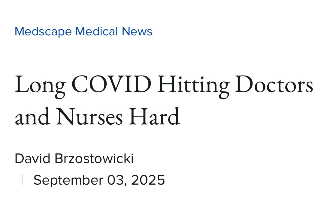 “A recent study published in Frontiers in Public Health, which surveyed 1678 US healthcare workers, found that 7.7% reported experiencing #LongCovid. Another study.. involving 445 healthcare workers, reported a prevalence of 9.44%” medscape.com/viewarticle/lo…