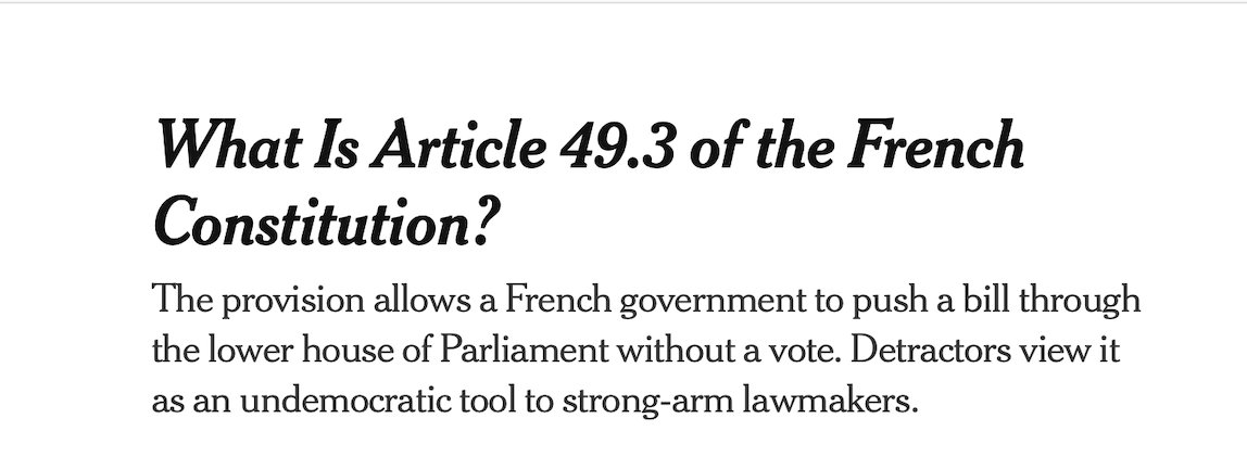 France also has Article 49.3, a constitutional tool allowing the government to pass laws without a vote.