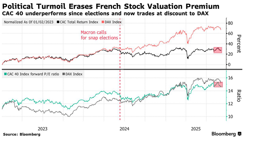 The market reaction is clear. France’s CAC 40 stock index has underperformed European peers.