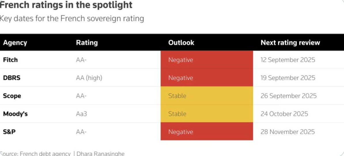 A downgrade could force funds to sell French debt. Bayrou’s fall raises the odds, and markets are already pricing it in.