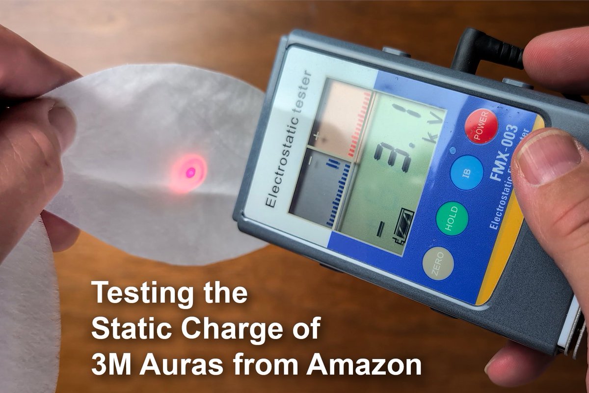 I also measured the electrostatic charge of the internal electret filter media layers. I got identical readings of 3,100 volts of charge from masks from the reference and test Auras.