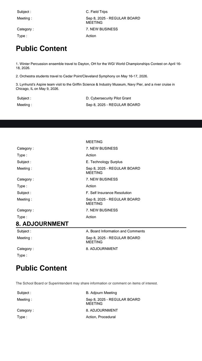 Proposed field trips have also been approved by the Board with little discussion.