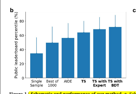 🧵4/n. This chart shows how different code generation approaches perform on the Kaggle Playground benchmark. It measures the public leaderboard percentile, which is a way to rank how well the generated solutions score compared to human submissions.