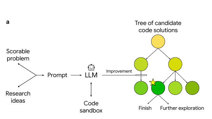 That means every candidate program can be judged by a simple numeric score, like how well it predicts, forecasts, or integrates data. Once you have a clear score, you can let a LLM rewrite code again and again, run the code in a sandbox, and use tree search to keep the best branches while discarding weaker ones