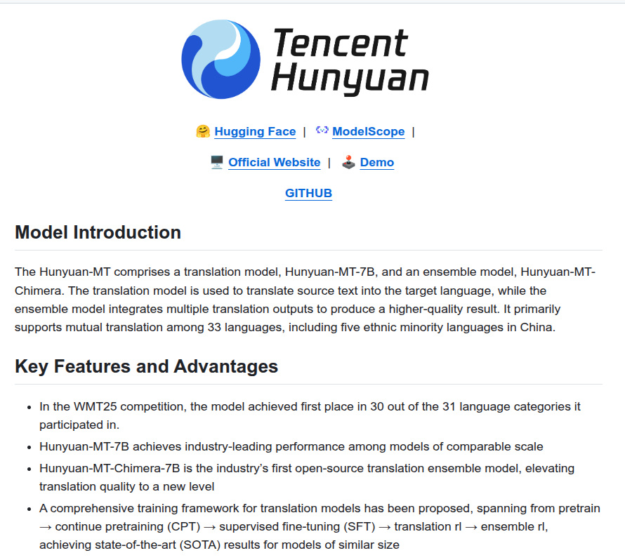 The setup has 2 parts, Hunyuan-MT-7B does direct translation and Hunyuan-MT-Chimera-7B fuses several candidate translations into 1 better output using weak-to-strong RL with GRPO and quality rewards.