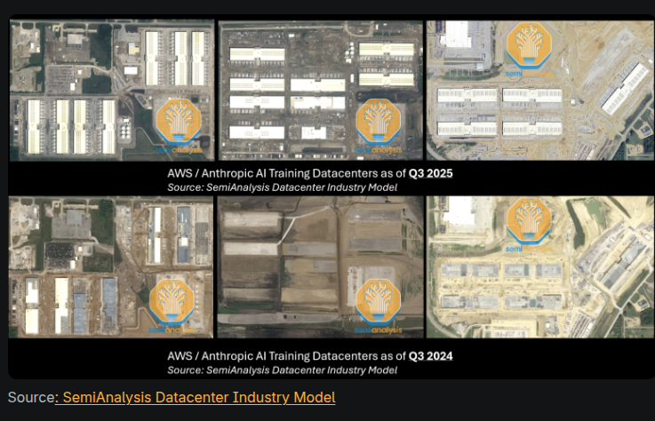 🧵2/n. 🏗️ AWS is finishing 3 campuses with over 1.3GW of IT capacity focused on Anthropic’s training runs.