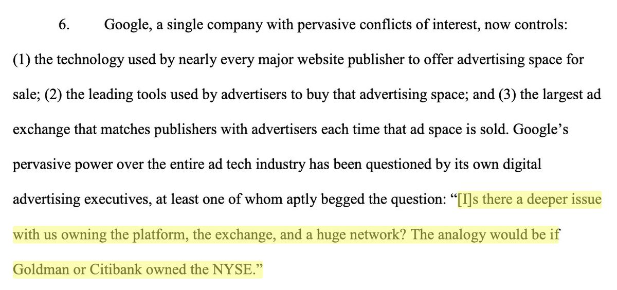 Google controls the entire "ad tech stack" - the tools publishers use to sell ads AND the tools advertisers use to buy them.