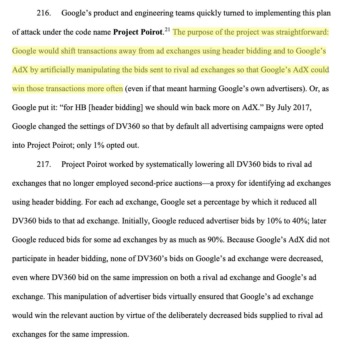 Google detected which publishers used header bidding, then intentionally submitted low bids on those auctions.